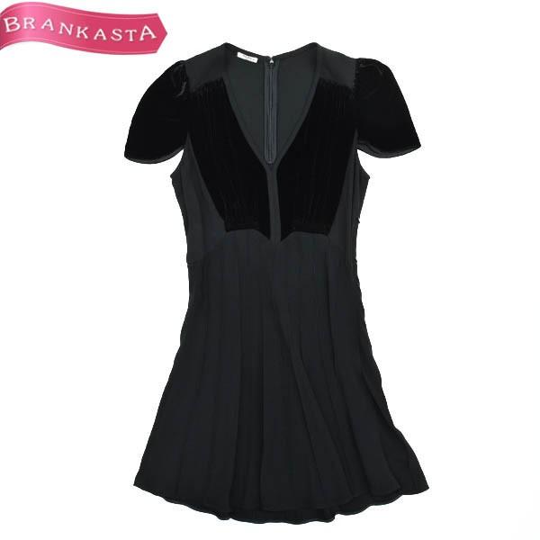 Miumiu ミュウミュウ フレアワンピース 40 異素材 ベロア使い 半袖 Vネック プリーツ風 ブラック 限定sale 10 31迄 22ka37 中古ブランドショップブランカスタ 通販 Yahoo ショッピング